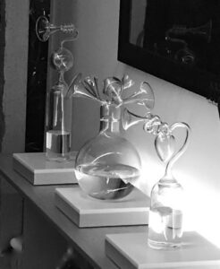 水の入ったガラス瓶に繋がる内臓型ホーン。